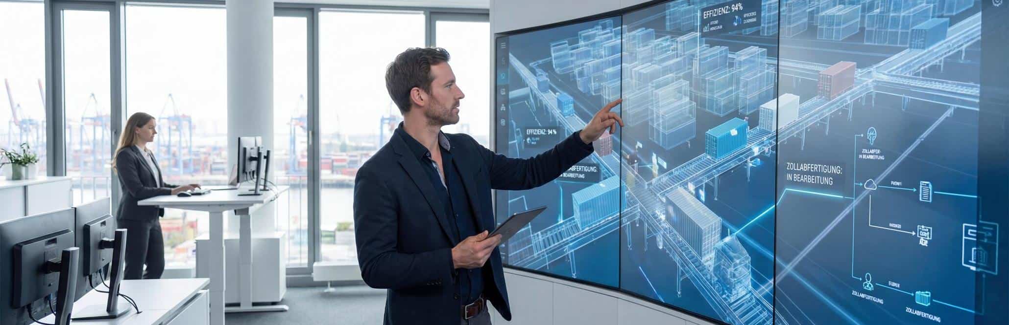 Ein digitaler Zwilling ist eine virtuelle, datengestützte Repräsentation eines physischen Objekts, Prozesses oder Systems. Er wird kontinuierlich mit Echtzeitdaten gespeist und ermöglicht so die Simulation, Analyse und Vorhersage von Verhalten – etwa entlang einer Importkette vom Lieferanten bis zur Zollabfertigung.