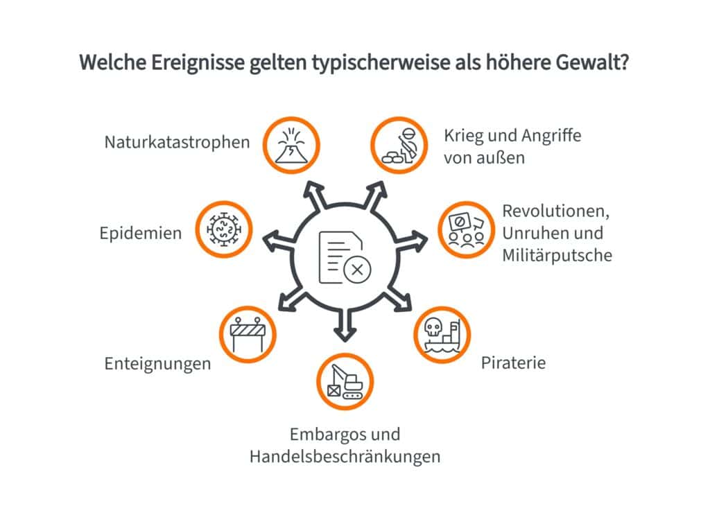 Typische Inhalte von Höhere-Gewalt-Klauseln sind: